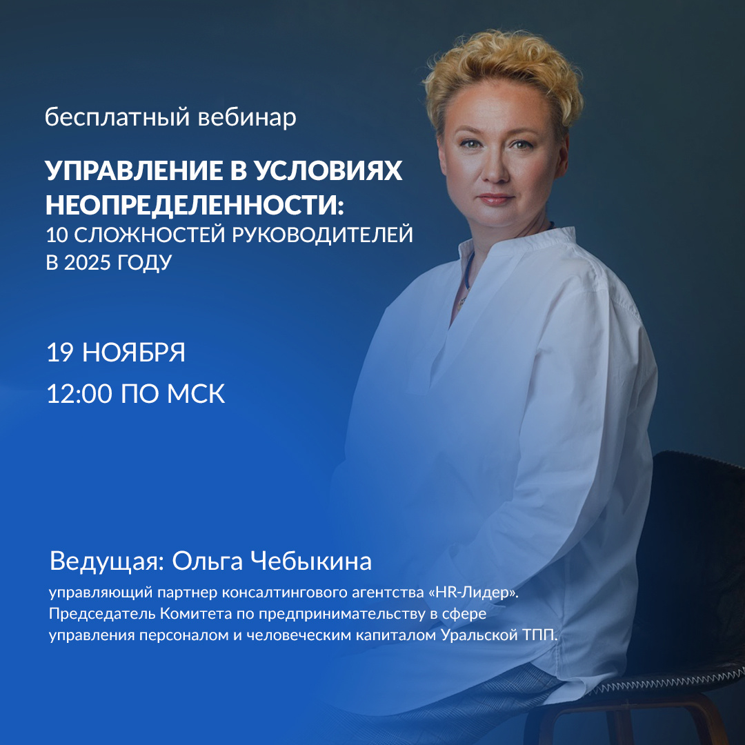 Текущая внешняя среда нестабильна, иерархия управления становится горизонтальной, набирает обороты скорость технологических изменений, на рынок приходят люди с другими ценностями и подходами к работе, а уровень выгорания у сотрудников растет. 📌 19 ноября в 12:00 (Мск) мы поговорим о том, как изменилось управление и с какими основными сложностями сталкиваются начинающие руководители. Бесплатный вебинар «Управление в условиях неопределенности: 10 сложностей руководителей в 2025 году» проведет Ольга Чебыкина, управляющий партнер консалтингового агентства «HR-Лидер», коуч первых лиц компаний и управленческих команд и преподаватель ВЭШ. «В нынешних условиях рынка начинающим руководителям недостаточно знать классические инструменты управления. В бизнесе произошло много изменений, и они продолжают происходить. Управленцы могут использовать цикл Деминга, но им не хватает знаний, как, например, работать с выгоревшими сотрудниками при кадровом голоде. И это только одна из сложностей, в жизни на