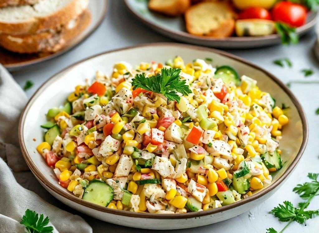 Салат из крабовых палочек — это лёгкое и освежающее блюдо, которое прекрасно подойдёт для повседневного ужина или праздничного стола. Благодаря своей простоте и быстроте приготовления, он завоевал популярность в домашних кухнях. Основные ингредиенты — крабовые палочки, кукуруза и варёные яйца, которые гармонично сочетаются в едином блюде, создавая нежный и приятный вкус. Сочность блюду придаёт добавленный свежий огурец. Крабовые палочки — 200 г Консервированная сладкая кукуруза — 150 – 200 г Яйца — 3 шт. Свежий огурец — 1 средний (около 150 г) Майонез — 3–4 ст. л. (по вкусу) Соль — по вкусу Зелёный лук или укроп — для украшения (по желанию) Салат из крабовых палочек готов. Приятного аппетита! Подписывайтесь на канал "Вкусно Очень" Данный рецепт на сайте👇