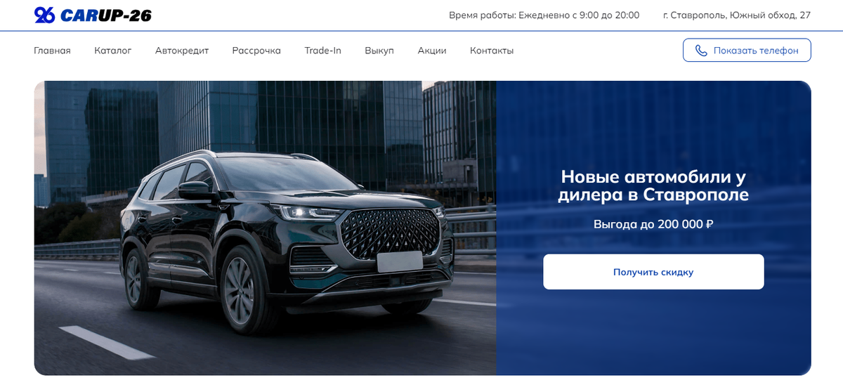 CARUP 26 (Кар АП) — это сайт мультибрендового автосалона. Сделан по шаблону, который часто используется на похожих ресурсах. Руководитель ООО, которому принадлежит площадка, занимает должность генерального директора в еще нескольких фирмах. Они тоже занимаются продажей легковых автомобилей, согласно указанным номерам ОКВЭД. Почему мы думаем, что в этом автосалоне могут разводить покупателей — читайте в нашем обзоре. Автосалон CARUP 26 (КАР АП) находится в Ставрополе. Он расположен по адресу: Южный обход, 27. Эти координаты указаны на сайте. Однако найти по ним автосалон на картах не удалось. При этом сайт car-up26.ru появился в июле 2024 года. Это следует из данных о регистрации домена. Если брать эту дату за дату открытия салона, то информация на картах давно бы появилась. Поэтому у нас есть теория, что это фейковый сайт для сбора заявок для салона с другим названием. Сайт появился в июле 2024 года, но на картах до сих пор не появился автосалон с названием CARUP 26 Согласно информации
