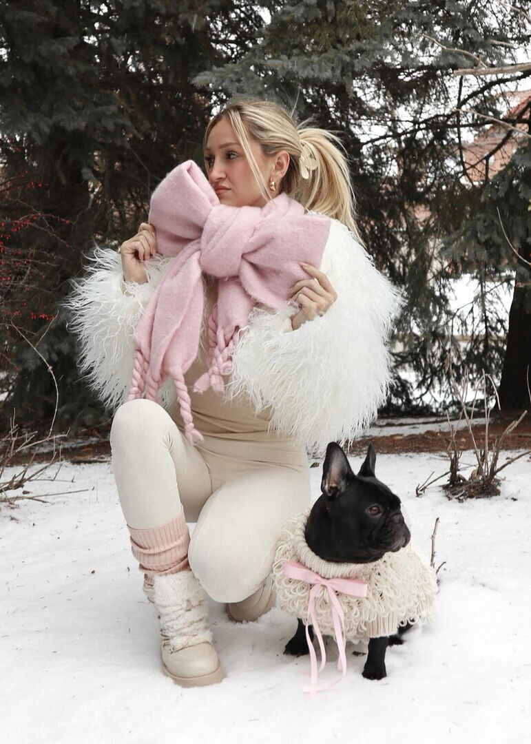 В TikTok появился новый тренд: модные инфлюенсеры начали завязывать шарф в виде банта. Необычный способ быстро набирает тысячи просмотров и лайков, а пользователи в комментариях прозвали его зимним coquettecore. Давайте разберемся, что это за стиль. Просто обернуть шарф вокруг шеи — скучно. Поэтому блогеры часто делятся лайфхаками с другими креативными вариантами носки. Например, еще недавно модные инфлюенсеры показывали туториалы, как завязать шарф в виде балаклавы. Сейчас на пике популярности — бант. Повторить такой легче, чем вы думаете. К тому же для этого способа подойдет любой шарф: тонкий, толстый, длинный или короткий. Однако на зиму лучше выбирать более плотные модели, чтобы образ казался завершенным. Завязать бант можно за минуту. Сначала перекиньте шарф через шею так, чтобы он свисал только с одной стороны. Далее сложите длинный конец в два-три слоя. Получившуюся «гармошку» обвяжите другой стороной, как показано на фото, и готово! Есть и иной способ. Чтобы получить бантик, н