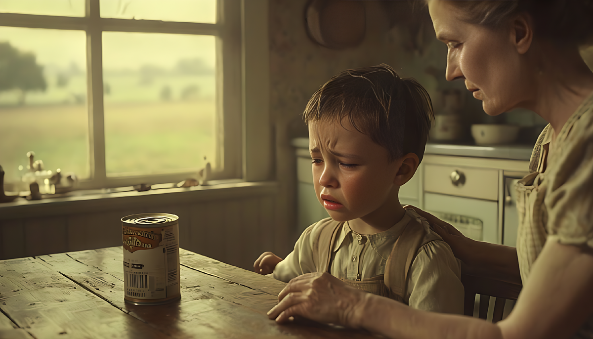 — Мама, а зайчику не больно было? — спросил я, сжимая в руках тяжелую, блестящую банку сгущёнки. Она остановилась, глядя на меня удивлёнными глазами.