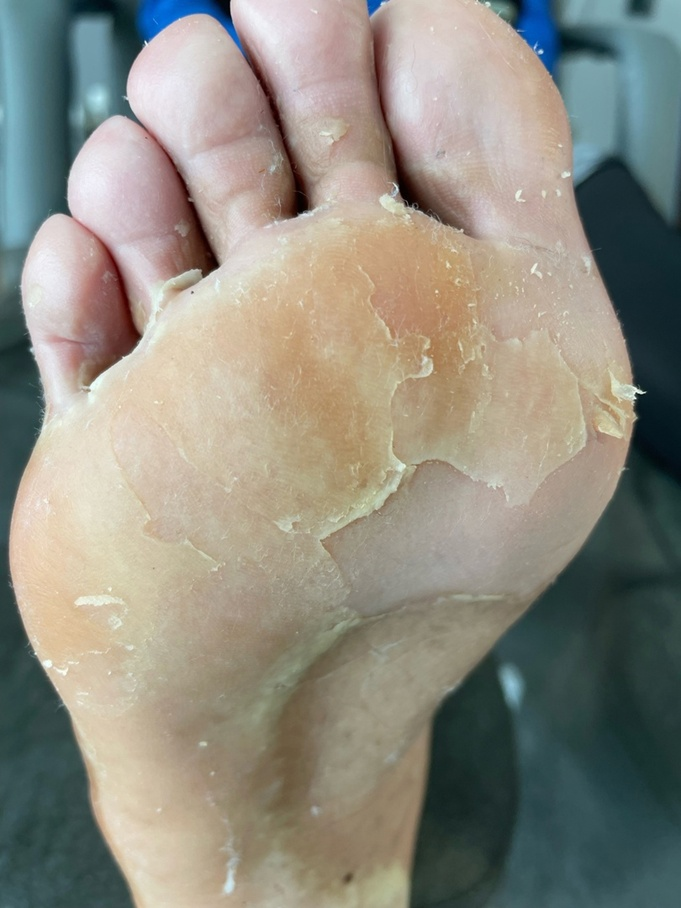 Периодически в кабинетах педикюра мастера встречают клиентов после прохождения курса химиотерапии или в его процессе. Химиотерапия приводит к такому неприятному состоянию как, кожная токсичность. Это разные реакции кожи, которые появляются более чем у 80% пациентов на фоне противоопухолевой терапии. Она губительно влияет не только на злокачественные клетки, но и на здоровые. Особенно страдают активно растущие клетки кожи, волосяных фолликулов, ростковой зоны ногтя. Кроме того, клетки кожи, волос и ногтей несут на себе те же рецепторы и ферменты, что и опухолевые клетки и тем самым они становятся «второй мишенью» при таргетной терапии. Различные препараты подавляют рост клеток, вызывают преждевременное образование клеток и тд. В результате у пациента развивается очень сухая кожа, истончается, шелушится, трескается, а так же может появляться кожный зуд, акнеподобные (угревые) высыпания. На ладонях и подошвах кожа может сходить пластами, краснеть, грубеть, трескаться и шелушится. На туло