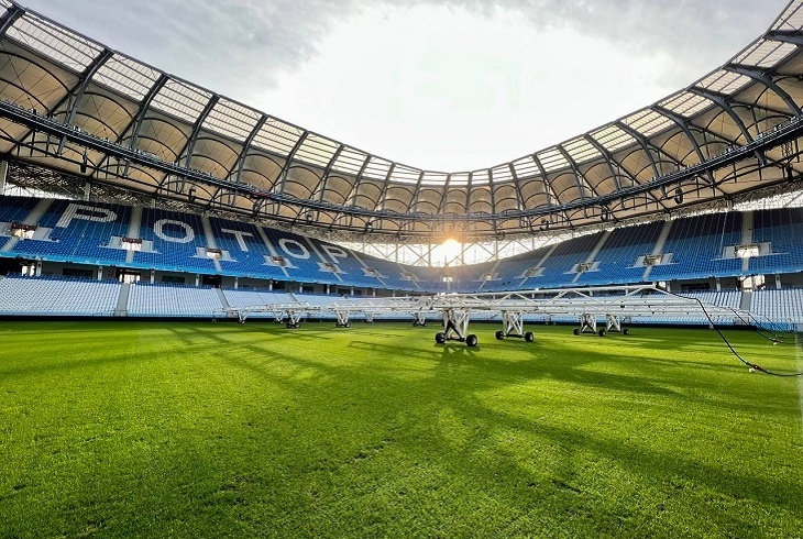 На «Волгоград Арене» готовят поле к товарищескому матчу между сборными России и Сирии, который пройдет 19 ноября и начнется в 19-30, сообщает V102.RU.