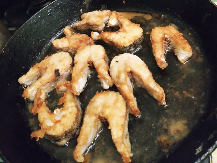 Вот и еще один дачный рецепт. В нем основным ингредиентом будет свеже пойманная щука. Как ловится щука можно прочитать в моих статьях о рыбалке на Северо-Западе Ленинградской области. Статей про жор щуки у меня уже много. Например, вот такая https://dzen.ru/a/ZyZ8mbKvZDxsPBGX Итак, щука поймана. Дальше чистим ее от чешуи, потрошим и нарезаем на стейки. Моем стейки. На плоскую тарелку насыпаем муку. Добавляем в муку немного соли и перемешиваем. Нагреваем сковороду. Можно на плитке, а можно и на костре. Наливаем в сковороду растительное масло. В муке обваливаем подготовленные стейки и раскладываем их на сковороде. Жарим рыбу с одной стороны до золотистого цвета, потом переворачиваем на другую сторону. Когда поджарится вторая сторона, рыба готова. Рыба вообще готовится очень быстро. Кстати, готовность рыбы всегда легко определить, попробовав отделить мясо от хребта. Если мясо легко отделяется, то рыба готова. Если стейки подготовлены заранее, то вся готовка займет меньше 30 минут. Я