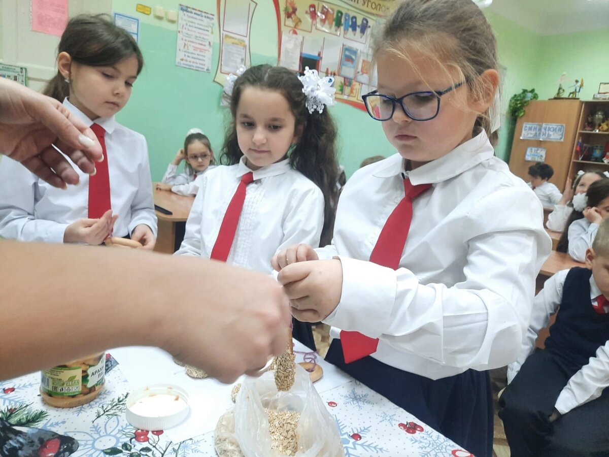За окном стремительно холодает, не за горами морозы и снег, который надолго останется с нами. Уже сейчас птицам сложнее найти еду, а значит и выжить. Вместе со своими экологическими наставниками – командой ТРОО «Экологическая защита», школьники Новомосковска приступили к оказанию посильной помощи пернатым. В Центре образования №1 для учеников 1-Б класса педагоги организации провели мастер-класс по изготовлению полностью натуральной экспресс-кормушки. Все, что вам понадобится, это простые баранки на растительном масле без соли и сахара, арахисовая паста без добавок и смесь злаков. Самое сложное в приготовлении угощения – не слопать все это самому. И надо сказать, дети, с этим справляются не всегда. Но уже опытные педагоги «Экологической защит» решают вопрос просто – закупают ингредиенты с запасом. Что касается самого процесса изготовления кормушки, то он занимает буквально пару минут: баранку нужно обмакнуть в арахисовую пасту и затем обвалять в злаковой смеси. Предваритель