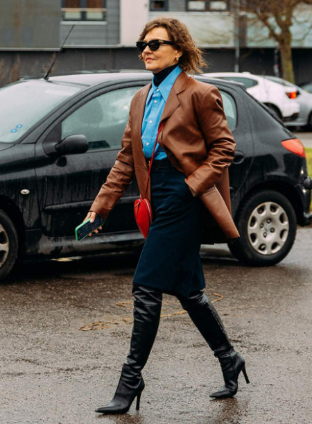 Сочетайте ее со строгими синими рубашками, например как рубашка насыщенного богатого голубого цвета - Sebline, юбкой-миди как у Max Mara и однобортным блейзером от Lemaire — весь шик весеннего образа, с достаточным теплом для холодного осеннего и зимнего дня.
