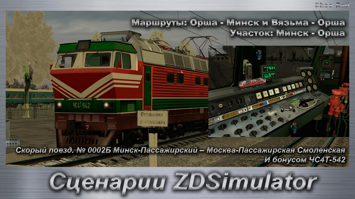 Сценарии ZDSimulator Скорый поезд. № 0002Б Минск-Пассажирский – Москва-Пассажирская Смоленская И бонусом ЧС4Т-542