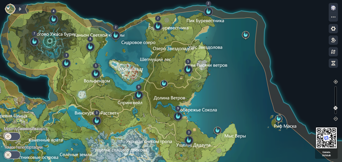 Интерактивные карты, такие как HoYoLab, позволяют отметить уже найденные анемокулы и помогают не пропустить ни один.
