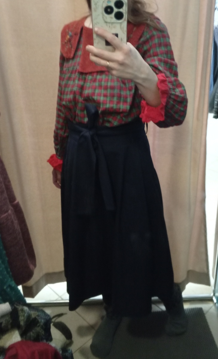 Всем добра. Сейчас покажу юбочки, которые примерила (а какие то и прикупила) в новый завоз в моем любимом секонде. Дело было давно, а качество фото разглядела только сейчас и оно не очень((( Увы. К сожалению, пока возможности выехать в секонд снова, не было. Поэтому исходим из того, что есть. Юбка с поясом. Не знаю, почему не понравилась. Не помню. Вроде тонкая синтетика, а у меня уже есть такие. Я искала на самом деле плотные юбки макси, чтобы можно было носить под рубашки и блузы. Что то нашла, какие-то покупочки едут ко мне через авито. А я покажу, что прикупила на этом завозе. Та же самая юбочка. Мне не очень нравится. Хотя под эту рубашку, в принципе, только красный пойдет или коричневый. Турецкий бренд недорогой одежды. Еще одна юбочка. На мне, к сожалению, плохо получилось. Она классная, но мне прям впритык впритык. Если вытащить рубашку, то конечно сошлась, но где то под грудью. А если учитывать, что юбка создана для того, чтобы явно не там носиться, то увы, нам с ней не по пут