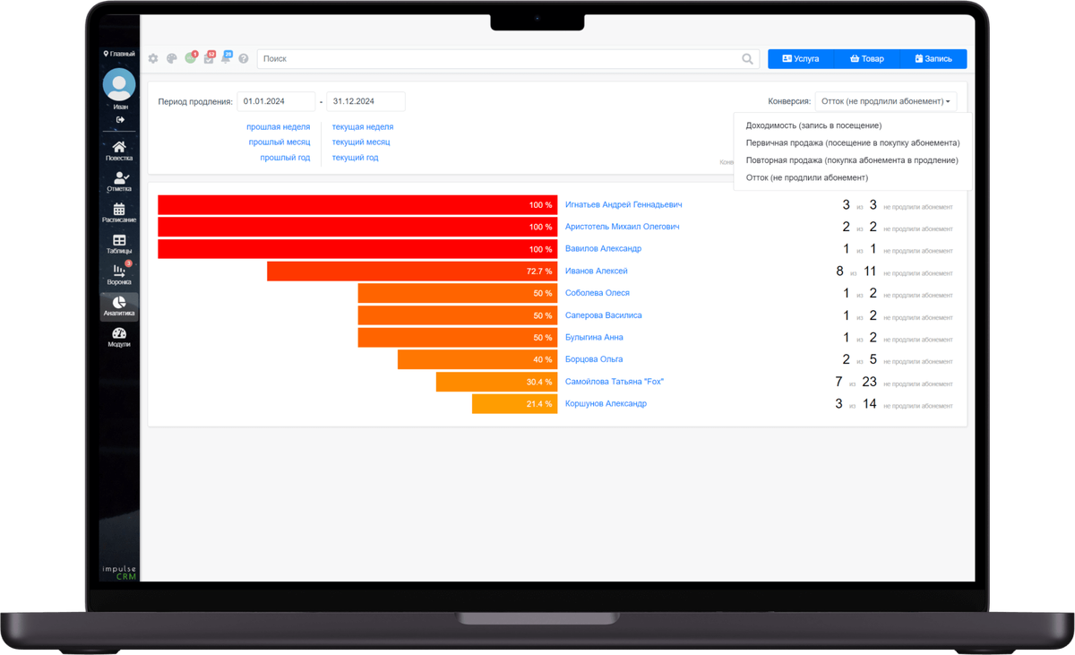 impulseCRM имеет много кейсов и одним из них является успешное внедрение CRM в компании, которая за год увеличила конверсию на 30%. Кроме того, использование аналитических инструментов позволило ей: