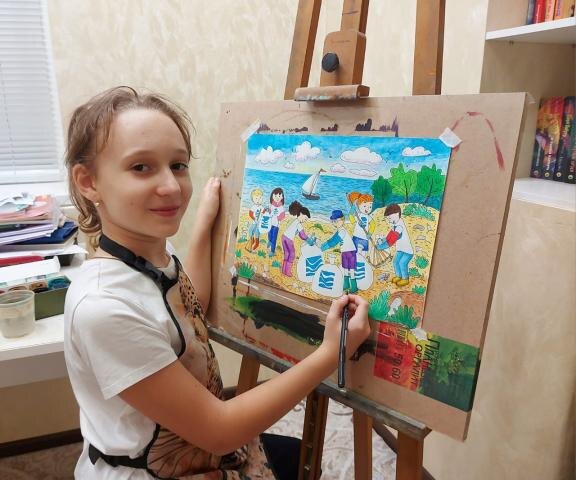 Кстати, это не первая победа юной художницы в этом конкурсе. Два года назад Настина работа была отмечена жюри "Разноцветные капли", а ее рисунок украсил футболки волонтеров Всероссийской акции «Берег добрых дел», проводимой Минприроды.
