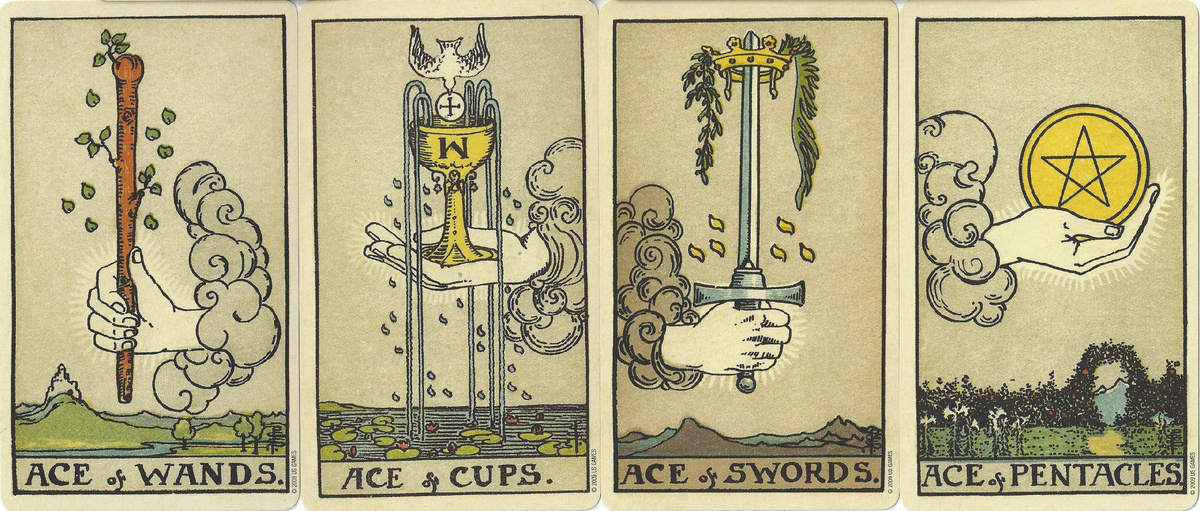Обращали ли вы внимание, что в слове «энтузиазм» прячется слово «туз»? Вот же оно: «энТУЗиазм». Давайте посмотрим, есть ли какая-то общая логика и можно ли провести параллель с этим словом и со значениями Тузов в системе Таро. Самое первое этимологическое определение энтузиазма отсылает нас к Древней Греции, в которой был глагол ἐνθουσιασμός, который обозначал «быть одержимым божеством». Есть и немного другое объяснение: если это же слово ἐνθουσιασμός разложить на составляющие, то можно увидеть два других слова: «эн» — «в, внутри», «теос» — «Бог». Фактически можно сказать так: «Бог внутри нас». В немецком и французском языках есть слова enthusiasmus и enthousiasme соответственно, и они переводятся как «исключительное (божественное) воодушевление». Следовательно, можно предположить, что энтузиазм сравнивается с Божьей искрой, неким внутренним импульсом, который зажигает человека и даёт ему возможность для реализации этой энергии. Есть даже версия, что само слово «туз» — это очень сильно