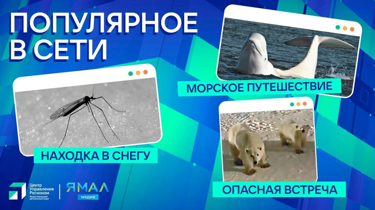«Ямал-Медиа» публикует традиционную подборку видео, которые больше всего понравились пользователям соцсетей на Ямале. Жительница Белоярска на прогулке повстречала комара. По словам женщины, он бродил по снегу, совершенно не обращая внимания на минусовую погоду. Сотрудники Харасавейского месторождения встретили семейство белых медведей. Хищники бродили рядом с вагончиком вахтовиков в поисках пищи. Вначале животные попытались забраться в окно, но сотрудники успели обезопасить себя и заперлись внутри. Не дождавшись добычи, медведи отправились восвояси. В Карском море сотрудники «Газпром добыча Надым» повстречали семейство белух. На видео животные наслаждались водной гладью и пускали фонтанчики. В комментариях предположили, что эти невероятные млекопитающие отправились в водное путешествие не только ради добычи, но и чтобы покрасоваться перед камерами. Подборка создана при поддержке ямальского ЦУР. Смотрите полный выпуск программы «Время Ямала» от 19:30 за 15 ноября.