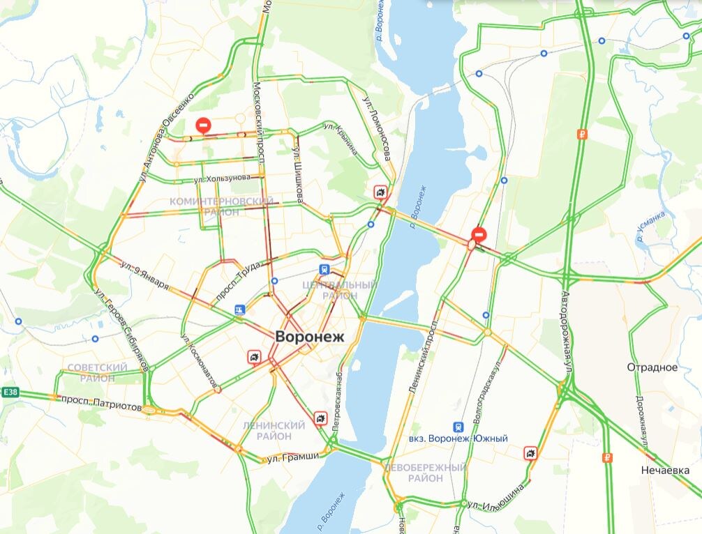 Вечером в пятницу, 15 ноября, в Воронеже образовались 7-балльные пробки. Об этом свидетельствуют данные сервиса «Яндекс. Карты». На них видно, что самая сложная дорожная обстановка – в центре города. «Окрасились» улицы Кольцовская, Плехановская, Кирова, 9 Января, Никитинская, 20-летия Октября, Хользунова, Маршала Жукова, Шишкова, Ворошилова, Матросова. Также остановились Московский проспект и проспект Революции – по обе стороны движения. На левом берегу коллапс случился на Остужева, Ленинском проспекте, Брусилова. ДТП на перекрёстке Ворошилова и 20-летия Октября, а также ближе к Вогрэсовскому мосту, на Ломоносова и на Ильюшина. Напомним, ранее сообщалось о приостановке работы светофоров на важном перекрестке в центре Воронежа. Дмитрий Амелин