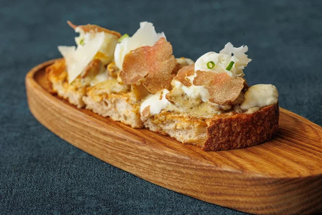 Ноябрь – традиционный сезон блюд с трюфелем, так что в этот месяц шефы стараются как можно чаще использовать деликатесный гриб в своих блюдах. Самый дорогой белый трюфель сейчас доступен далеко не всем и поэтому мастера высокой кухни в основном готовят специальные угощения с его более демократичным, но тоже благородным и ароматным черным собратом. Мы сделали для вас подборку из интересных позиций с трюфелем, которые сейчас подают в разных ресторанах обеих столиц. 📌Подписывайтесь на наш канал, чтобы не пропустить последние новости о еде и сохранить все рецепты в одном месте. В итальянском ресторане с сицилийским оттенком можно отведать брускетту с настоящим белым трюфелем, белыми грибами и перепелиным яйцом. Редкий деликатес в этом месте также добавляют в восемь других блюд. С помощью специального слайсера сырой гриб нарезают тонкими, практически прозрачным лепестками. В осеннем меню ресторана появился трюфельный камамбер – кружок сыра поделен на две половинки, а между ним слой грибног