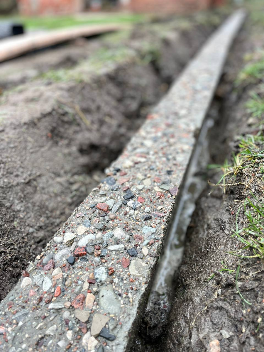 Будем считать, что так задумано, ведь класть брусчатку будем и бордюр делаем с «закосом под немецкий»