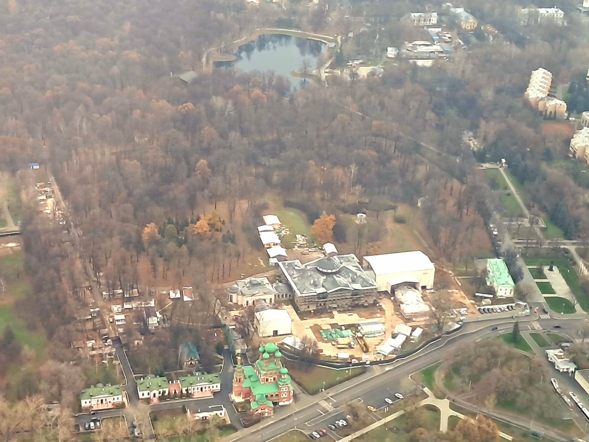 На смотровую площадку поднимают, понятное дело, на лифте. Он, конечно, не настолько новый и быстрый, как в Москва-Сити, поэтому уши закладывает — особенно на спуске. Ну не критично. Сама смотровая — круглая, застекленная, ходи да глазей. Я была в ноябре, причем в не самый ясный день, так что обзор здорово подпортил туман.:( Увы. Но всё равно что-то удалось и увидеть, и сфотографировать. На Останкинский дворец и на ВДНХ, конечно, открывается очень хороший вид сверху. Делюсь!
