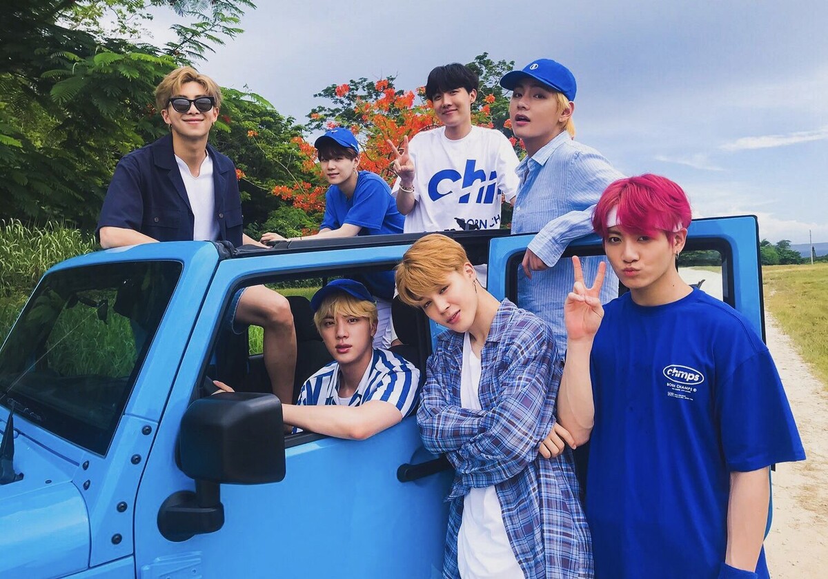 Юный натуралист Намджун опять охотился на крабиков, а Ви с Шугой успели заняться шопингом, и Ви, надев обновки, оказался весь украшен надписями «I love Saipan!»