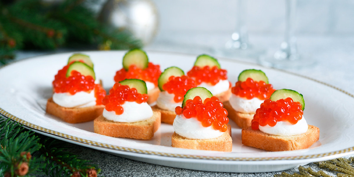 Ломтик хрустящего хлеба и слой тягучего сливочного сыра — прекрасное сопровождение для любимого новогоднего деликатеса.