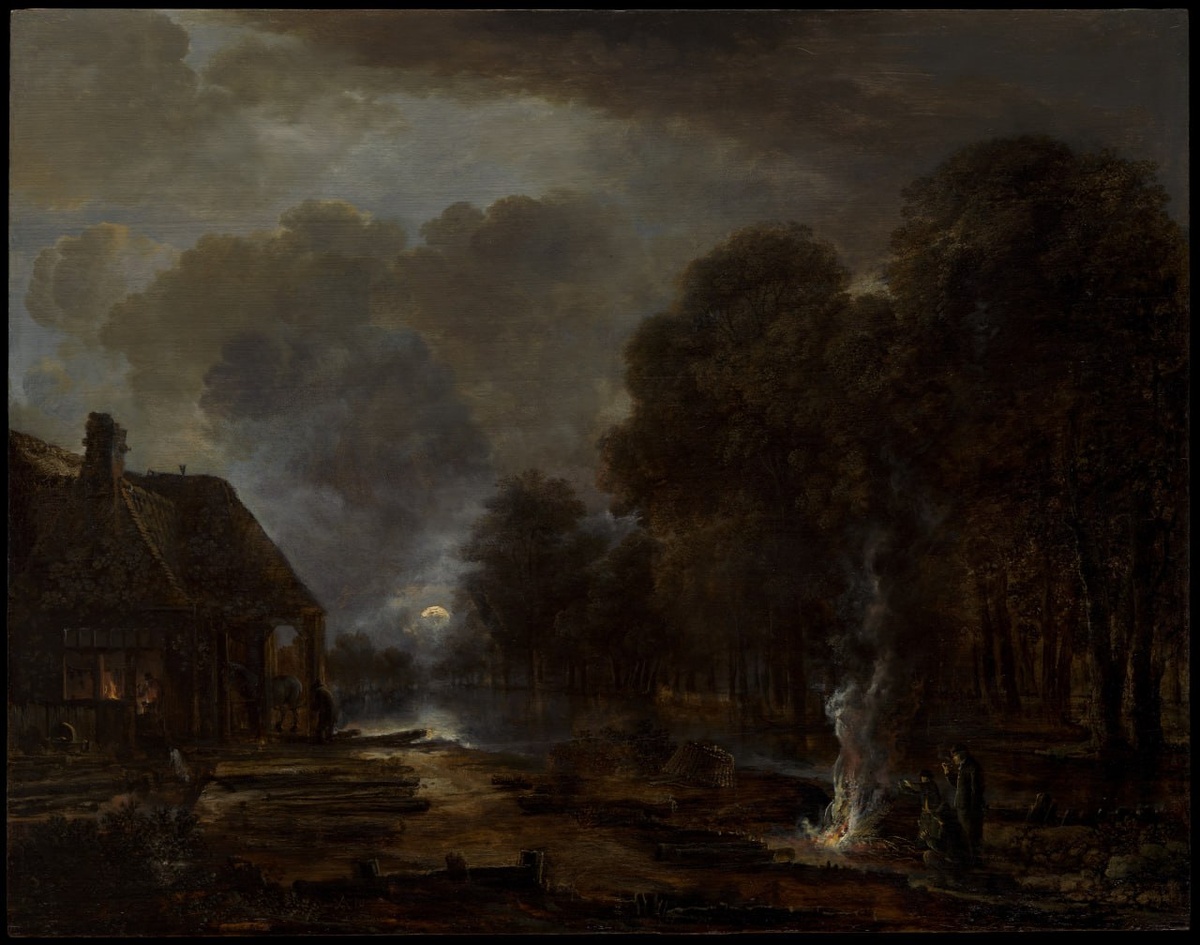 Картина «Кузнец», созданная Аертом ван дер Нером в 1650-х годах, представляет собой яркий пример мастерства художника в изображении ночных пейзажей. Этот загадочный и атмосферный сюжет переносит зрителя в сельскую местность, где тусклый свет луны и мерцающее пламя освещают фигуры и детали окружающего мира. Работа подчеркивает способность ван дер Нера сочетать реализм с глубоким ощущением атмосферы. Основой композиции служит техника киароскуро, которая усиливает драматизм сцены. Яркий огонь кузницы на правой стороне привлекает внимание, создавая контраст с мягким светом луны, который пробивается сквозь облака. Тени окружающей ночи плавно сменяются светлыми акцентами, погружая зрителя в сцену и передавая ощущение ночной глубины. Тщательная проработка текстур — ключевая черта ван дер Нера. Мягкие переливы света, созданные с помощью техники скамблинга, и эффект шероховатой поверхности, достигнутый сухой кистью, добавляют композиции выразительности. Лёгкий дым над огнем, грубые стены хижин