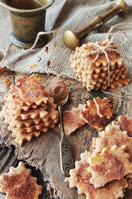 Нам нужно: ✔ 200 гр масла или маргарина, мягкого ✔ 1/2 стакана коричневого сахара ✔ 3/4 стакана обычного сахара ✔ 1 яйцо ✔ 1 ч.л. ванильного экстракта ✔ цедра 1 лимона (около 1 ст.л.) ✔ 3 стакана муки ✔ 0,5 ч.л. соли ✔ 1 ст.л. корицы ✔ 1 яйцо ✔ 2 ст.л. молока ✔ 1/4 стакана сахара ✔ 1 ст.л. корицы Смешайте в миске муку, соль и корицу и отставьте в сторону. Масло с двумя видами сахара взбейте на средней скорости миксера в пышную массу. Добавьте яйцо, ваниль, лимонную цедру и снова взбейте. Осторожно введите мучную смесь, увеличьте скорость миксера и взбивайте, пока тесто не будет отставать от стенок чаши миксера. Сформируйте из теста диск, заверните его в плёнку и отправьте в холодильник минимум на час. Достаньте тесто из холодильника. Разогрейте духовку до 175°C. Раскатайте тесто на хорошо припыленной поверхности в пласт толщиной 0,5 мм. Сформируйте из теста печенья, используя формочки или фигурное колёсико. Выложите печенье на выстеленный бумагой для выпечки протвень. Взбейте