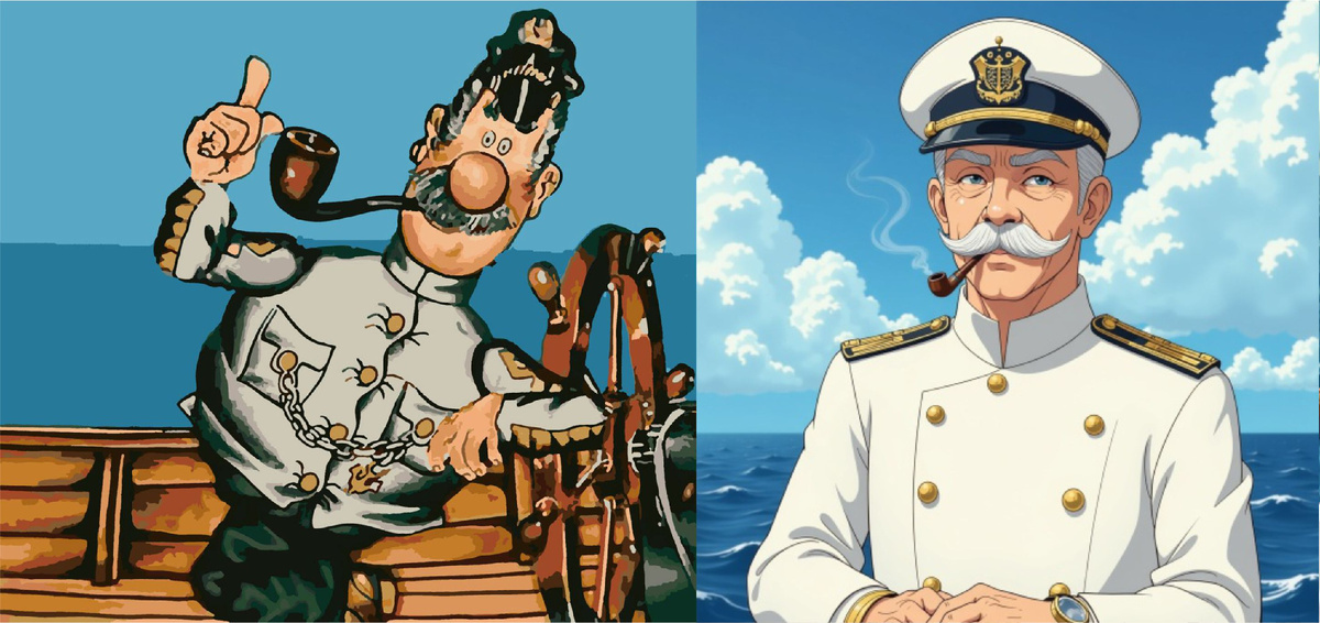 Я почему то никогда не любила Диснеевские мультфильмы, сейчас со всеми событиями вокруг Голливуда и новостей про некоторых аниматоров Пиксар, начинаю догадываться, что чисто интуитивно они для меня были бездушными. Мне нравились советские мультики, Винни Пух, Ежик в тумане, Тайна третьей планеты и многие другие, рисованные вручную с особой тщательностью, знаю смотрела много передач про эту профессию.( помните же я мечтала стать мультипликатором) Гораздо позже узнала про японского мультипликатора Миядзаки и тоже влюбилась, пересматривая его Унесенные призраками несколько раз. Со следующей недели хочу начать писать про море, яхтенный дизайн и все такое прочее, можно сказать постигать буду это ремесло при вас. Родилась идея, начать с такого развлекательного контента, посмотреть с помощью ИИ как бы выглядел прекрасный мульт Капитан Врунгель , если б его снимал Миядзаки. Поехали! Обаятельный, умный и находчивый, настоящий мастер импровизации. Врунгель любит философствовать и давать советы,