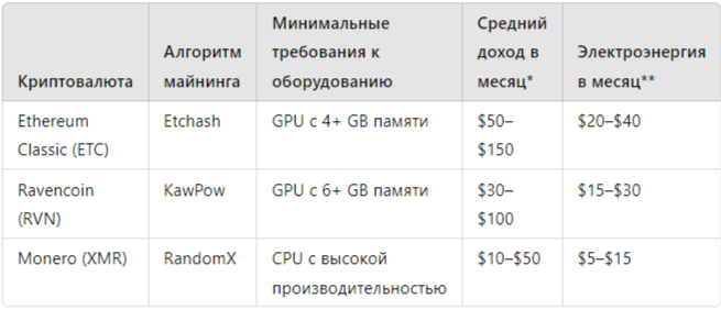 ** Стоимость электроэнергии рассчитана на основе средних тарифов. Вывод: Майнинг на домашнем ПК подходит для тех, кто