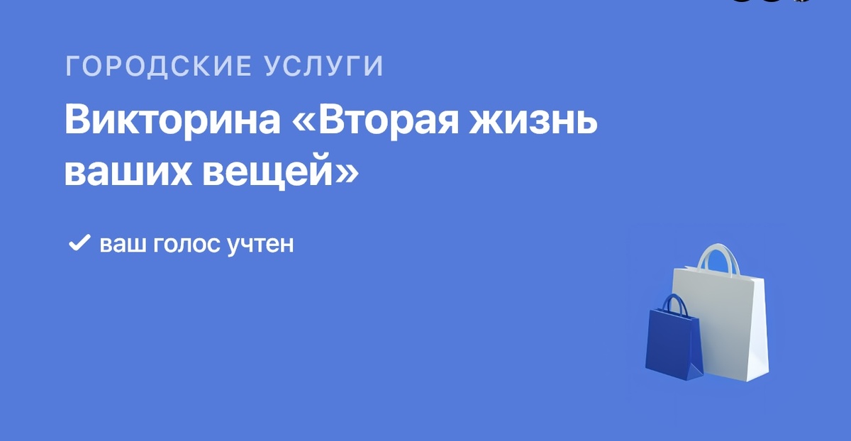 За Викторину можно заработать 40 баллов Я принялa участие в голосовании «Викторина «Вторая жизнь ваших вещей»» в проекте «Активный гражданин» https://ag.mos.ru/poll/16380?ref=BYvkfBcqMC Вопрос 1. Как вы думаете, сколько предметов можно вывезти за один раз? Нет ограничений Вопрос 2. Кто может оформить заявку в сервисе «Вывоз ненужных вещей»? Пользователи mos.ru старше 18 лет со стандартной или полной учетной записью Вопрос 3. Вывоз каких предметов чаще всего заказывают горожане? Холодильники, стиральные машины, кухонные плиты Вопрос 4. Сколько тонн ненужных вещей вывезли на переработку или экологичную утилизацию за все время работы сервиса? 2 500 тонн Вопрос 5. Какие предметы можно вывезти бесплатно? Все перечисленное Вопрос 6. Сколько переработанного пластика получили за все время работы сервиса? 300-310 тонн Вопрос 7. Сколько холодильников было переработано за время работы сервиса? Более 25 тысяч Вопрос 8. Какие документы нужны, чтобы вывезти автомобиль? Паспорт владельц