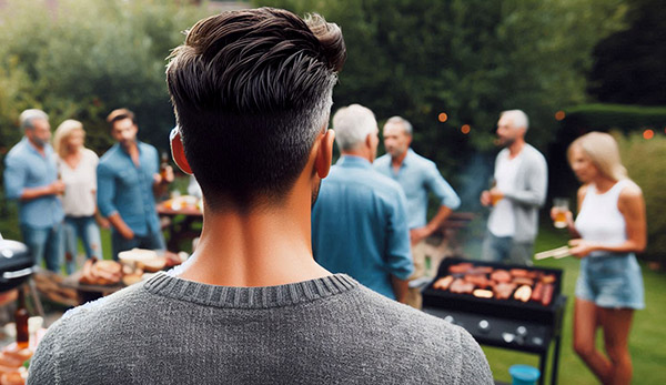 Рейни, одетый в цивильное, тоже слился с этим фоном, наблюдая танцы регалий со стороны. Всё те же сотрудники, тот же «паркинсон» на самодвижущемся кресле, важные персоны и неважные персоны, одетые нарочито без официоза — все бродили вокруг по просторной веранде, в доме и в саду. Беседуя, перетекая от одной группы к другой, собирая всякую снедь на бумажные тарелки. Во дворе несколько энтузиастов крутились около котла и готовили барбекю, благо день выдался тёплый. Судя по звукам оттуда, там явно рассказывали не очень приличные анекдоты, пользуясь отсутствием поблизости женщин.