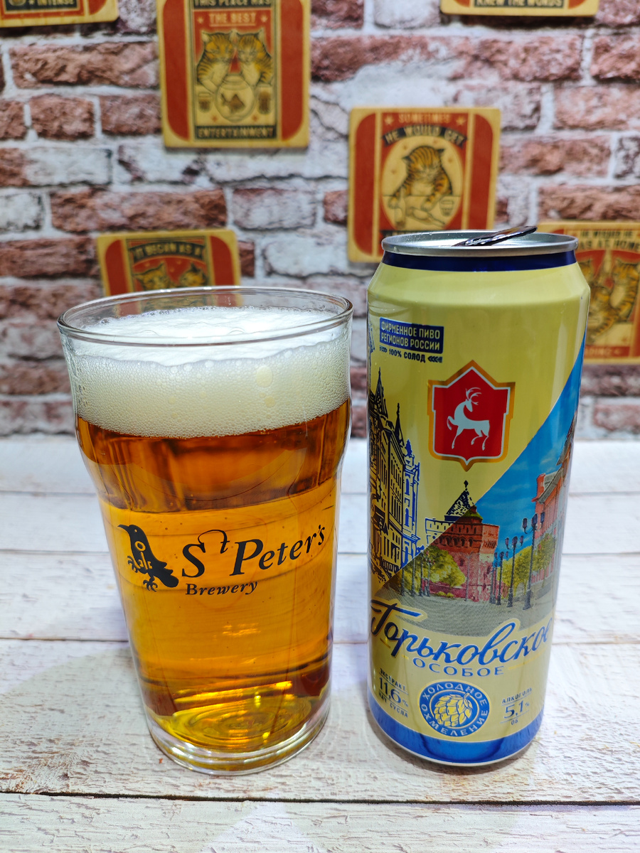 Мне кажется или художник-оформитель вдохновлялся Жигулями от МПК? Та же самая цветовая палитра. Те же шрифты. Та же надпись "Фирменное". Или прообразом стало Жигулёвское Фирменное от ОПХ? Поставь три банки рядом и можно подумать, что они из одной серии. А нет. Компании разные. Сегодняшнее пиво принадлежит пивоваренной компании "Балтика" и сварено на пивзаводе "Ярпиво" в г. Ярославле. ********************************************************************************** На сайте пивоварни описание следующее: Горьковское – пиво, сваренное специально для жителей Нижнего Новгорода. Новый вкус по праву оценят и те, кто еще помнят город под именем Горький, и те, кто родился в Нижнем Новгороде и окрестностях, потому что история не стоит на месте, а вкус настоящего качественного пива ценится во все времена. Классическое светлое пиво с узнаваемым солодовенным вкусом, а применение уникальной технологии холодного охмеления наполняет его легким хмелевым ароматом и мягкой горчинкой в послевкусии. *****