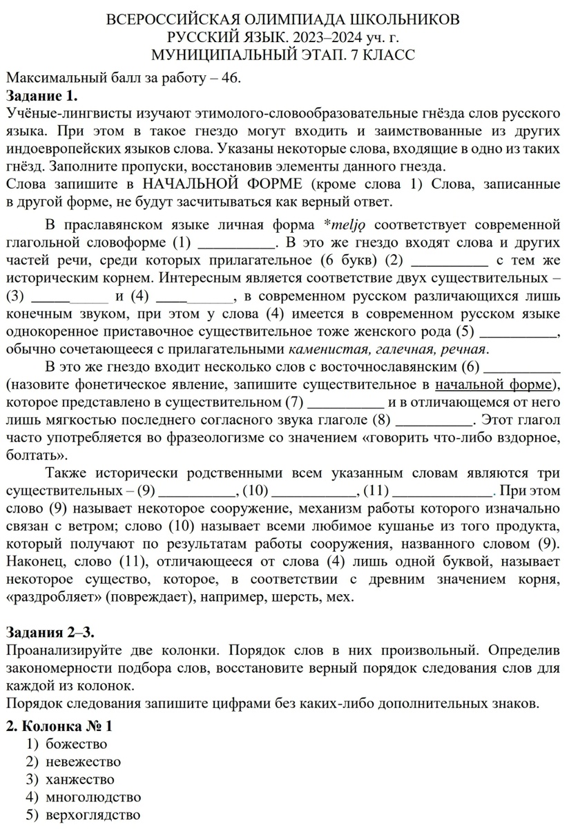 Ответы и задание на ВсОШ ПО Русскому языку 7,8 класс 77 регион Москва 16 ноября 2024гг/