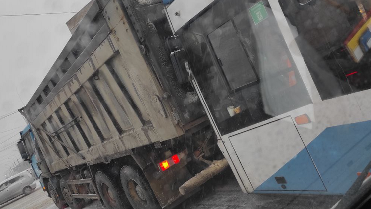 В Дзержинском районе Новосибирска столкнулись троллейбус № 36, курсирующий по маршруту улица Лазурная - Вокзал «Новосибирск-Главный», и самосвал Shacman X3000. Инцидент произошел 15 ноября 2024 года на пересечении улиц Красина, Фрунзе и Кошурникова. Очевидцы произошедшего поделились фотографиями в социальных сетях. Авторы публикации также отмечают, что в троллейбусе на момент столкновения были люди. Однако, информации о пострадавших нет. В комментариях к посту новосибирцы активно делятся мнением по поводу увиденного, стоя в образовавшейся пробке. Большинство уверены, что троллейбус догнал грузовик и впечатался в его заднюю часть. Однако есть и другая версия событий. «Дважды там проезжал, задаётся мне что грузовик сдал назад, освобождая перекрёсток», – сообщил читатель Александр П. «Там за светофором, на этом же перекрёстке, перед ними еще три ездуна стояли, один на бордюр залетел. Связано это или нет – не знаю», – указала Елена. «Было бы неплохо еще за не прикрытый груз оформить», – до