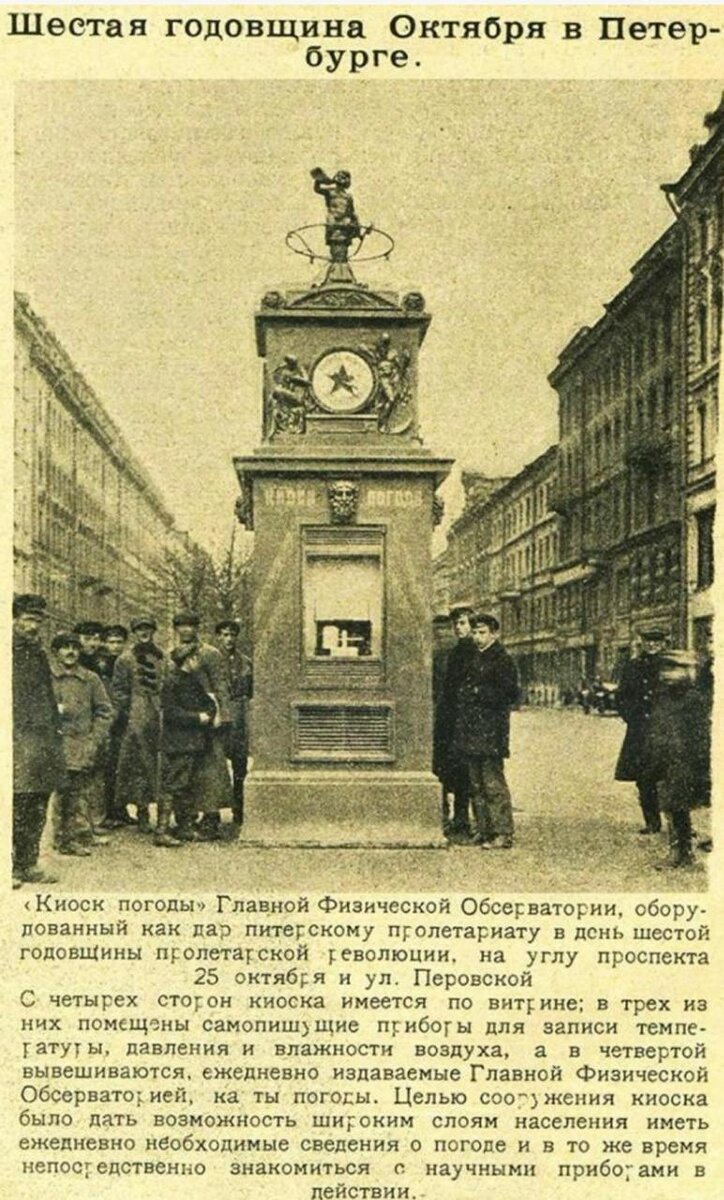 Эти часы вы конечно же видели. Не заметить их практически не возможно. Находятся они на Малой Конюшенной улице, попасть на которую можно, свернув с Невского проспекта, не далеко от Казанского собора. Но это не просто часы, а метрологический павильон, более известный как часы Лансере. Именно он их спроектировал, еще до революции, по просьбе Городской управы. А уже в 1914 году они появились на улице Петербурга. Среди горожан за часами закрепилось название «киоск погоды» т.к. благодаря ему они получали информацию об атмосферном давлении, влажности воздуха и температуре. Сами же показания фиксировались внутри на специальной бумажной ленте. Была и еще одна цель - знакомство населения с научными приборами. Но в 1930 году, было принято решение, что всем это знать не нужно и не обязательно и киоск переехал на Елагин остров, где был использован для хранения паркового инвентаря. Результат не заставил себя ждать. Из него исчезли барограф, термограф с самописцами, а часовые механизмы вышли из с