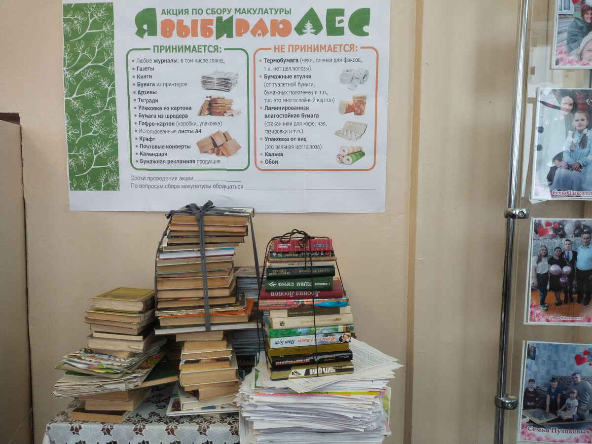 У нас акций по сбору макулатуры в районе очень много проходит, но мы отдаем предпочтение только одной. Называется она "Я выбираю лес"