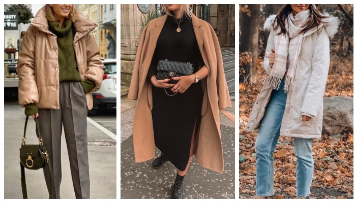 На календаре еще осень, за окном погода не радует, каждый день приносит изменения. Чтобы поддержать хорошее настроение в это время года, стилисты советуют стильно одеваться – это действительно проверенный способ. Стильный и уютный осенний образ состоит из синего берета, шерстяного оверсайз пальто, асимметричной юбки изумрудного цвета, теплого темно-зеленого шарфа с бахромой, а также замшевых ботильонов на шнуровке благородного синего цвета. Ярким акцентом в общей композиции является каркасная коричневая сумка из натуральной кожи. Черное платье из мягкого и теплого трикотажа с высоким разрезом + громоздкие кожаные ботинки на шнуровке + бежевое базовое пальто в классическом исполнении + стеганый клатч черного цвета с золотой фурнитурой — стильный повседневный look на каждый день. Аутфит, который вне всякого сомнения обратит на себя внимание включает в себя оверсайз вязаный свитер кремового цвета, объемное светлое пальто, кожаные черные лосины, а также громоздкие ботинки на тракторной под