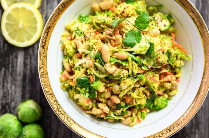 Салат очень прост в приготовлении и является отличным способом очень быстро потушить брюссельскую капусту. Это на случай, если вы похожи на меня. Вы покупаете огромный пакет брюссельской капусты (не говоря уже о пакете брокколи, цветной капусты и стручков спаржи?) и задаетесь вопросом, сможете ли вы когда-нибудь использовать ее до того, как она окажется в мусорном ведре. Давайте предотвратим это, хорошо? сок 1/2 лимона Возьмите мандолину и тонко нарежьте брюссельскую капусту. Если вы используете ручку-измельчитель, которая идёт в комплекте с мандолиной, нарезать капусту очень просто. Положите нарезанную брюссельскую капусту в миску среднего размера. Добавьте 1 ч. л. соли и слегка отожмите капусту, чтобы она немного размягчилась. Отставьте в сторону. Натрите морковь на тёрке и положите в ту же миску, что и брюссельскую капусту. Перемешайте ложкой и отставьте в сторону. Измельчите зубчик чеснока и положите его в миску. Тонко нарежьте лук. Разогрейте небольшую сковороду, добавьте 2