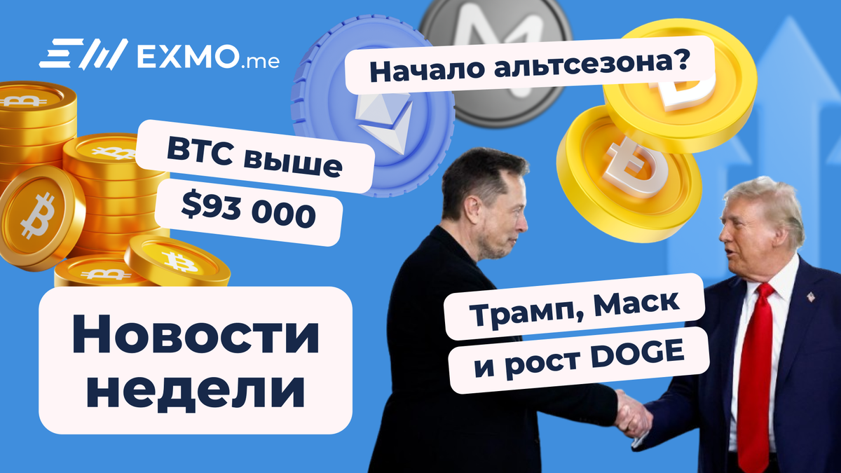 Мир криптовалют продолжает удивлять новыми рекордами. На этой неделе биткоин пробил отметку в $93 000, а Dogecoin снова на слуху благодаря Илону Маску. Но это далеко не все новости! Расскажем обо всём по порядку.