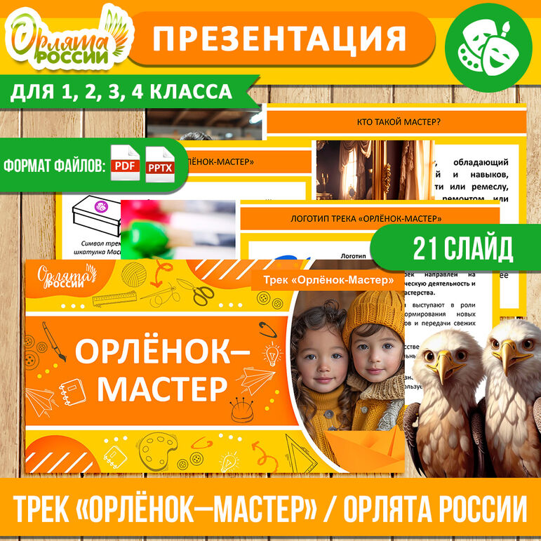 Презентацию «Орлёнок-Мастер» для 1, 2, 3, 4 класса | Орлята России, трек «Орлёнок-Мастер» можно скачать здесь.