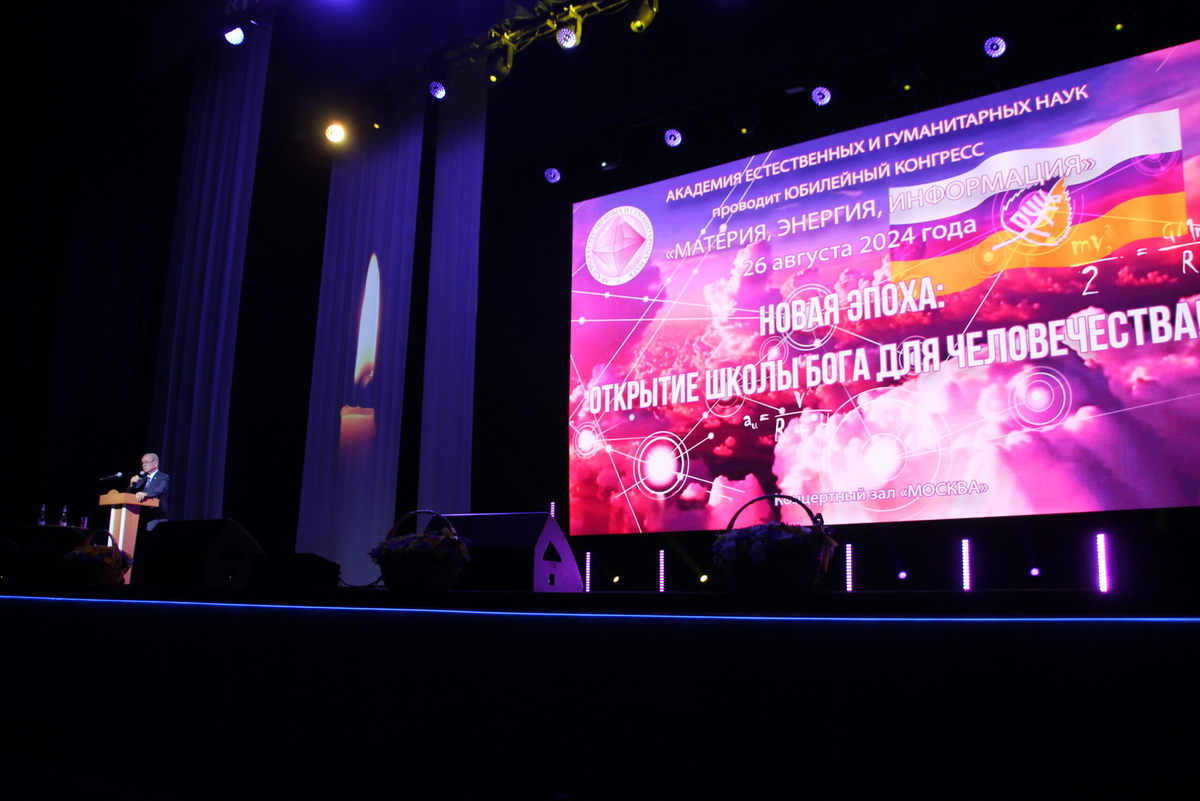 Утром 26 августа в Москве между станцией метро «Технопарк» и парком с символическим названием «Остров Мечты» можно было наблюдать потоки празднично одетых, одухотворённых людей, направляющихся к концертному залу «Москва», в котором состоялся научный конгресс «Материя. Энергия. Информация». Он был организован Академией естественных и гуманитарных наук. В этом значимом для общественной жизни страны мероприятии приняло участие около четырёх тысяч человек из всех регионов нашей Родины, представителей общественных организаций, входящих в Национальный союз общественных объединений содействия духовно-нравственному развитию населения «Начало Начал Руси». Это восемь (по числу федеральных округов) межрегиональных организаций и движений, а также молодёжная организация «Космологическое содружество молодёжи «Новое поколение» и, конечно, члены Академии естественных и гуманитарных наук.