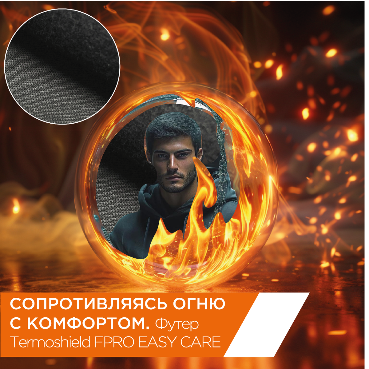 Футер — это вид трикотажного полотна, имеющего ворс с изнаночной стороны и гладкую, приятную на ощупь лицевую поверхность. Существует четыре основных типа футера: 1. С вискозой. Добавление вискозы значительно повышает прочность готового полотна. Такой футер также имеет привлекательный внешний вид. Среди преимуществ этого вида можно выделить мягкость и доступную цену. 2. С лайкрой. Отличается эластичностью, упругостью и интересным блеском. 3. С шерстью. Такая одежда обеспечивает комфорт, тепло и хороший теплообмен. 4. С полиэстером. Этот материал характеризуется износостойкостью, прочностью и меньшей сминаемостью. В спецодежде футер выполняет те же функции, что и в обычной одежде, но к нему предъявляются дополнительные требования. Termoshield FPRO EASY CARE – термо-огнестойкий трикотаж (футер)