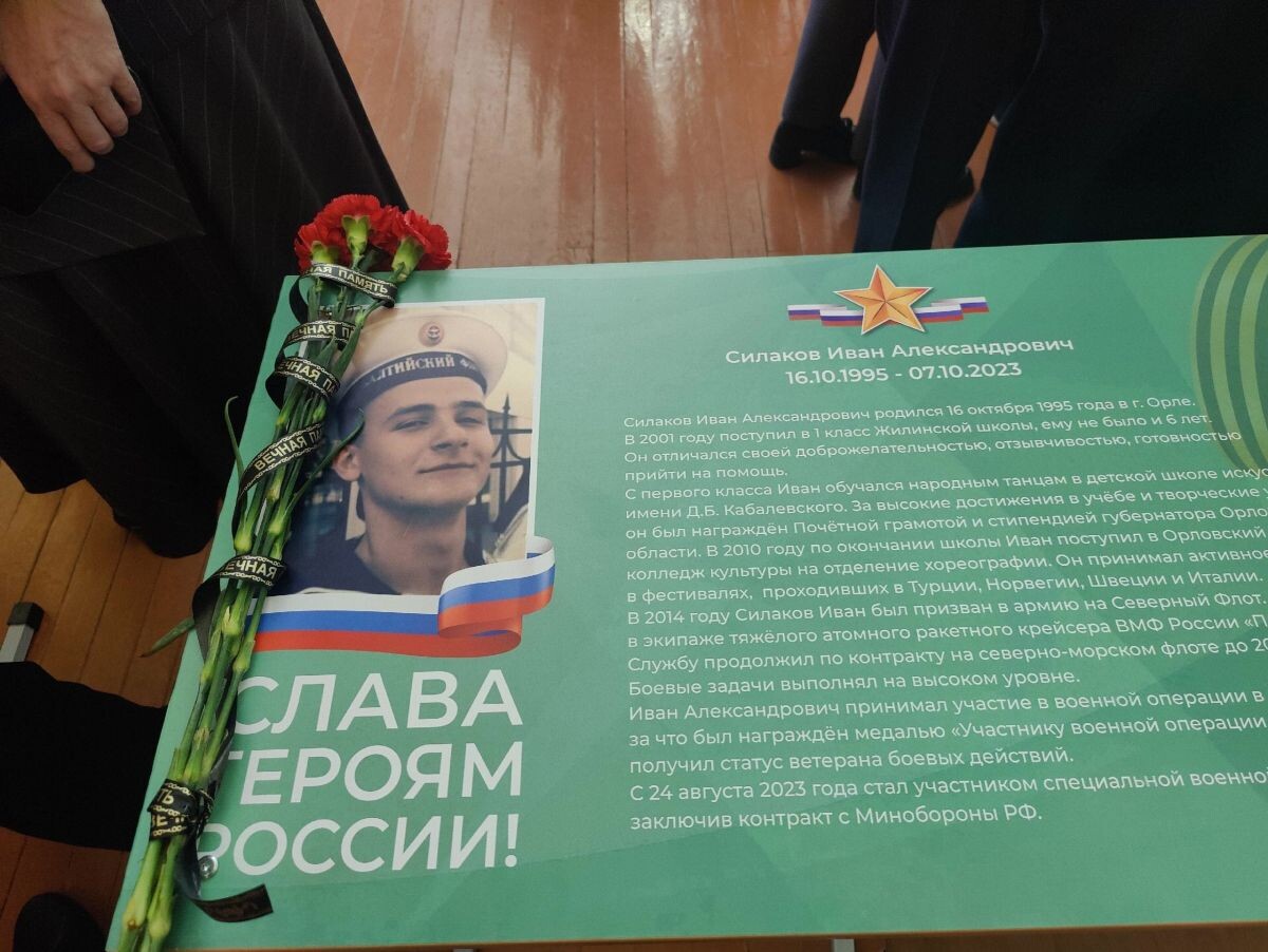 Накануне, 15 ноября, в Жилинской средней школе Орловского округа открыли две парты героя в честь погибших в ходе СВО парней, сообщили в администрации округа. В школе появились парты Ивана Силакова и Сергея Черкасова. Иван был выпускником Жилинской школы. Молодой человек успел принять участие в военной кампании в Сирии. Его заслуги там отметили медалью. Позже Иван отправился на СВО. Парень 7 октября 2023 года. он посмертно награждён орденом Мужества. Сергей служил командиром мотострелкового отделения. Во время отпуска он рассказывал о своей службе учащимся "Знаменской СОШ". Молодой человек погиб 22 сентября 2023 года. Сергей удостоен ордена Мужества посмертно.