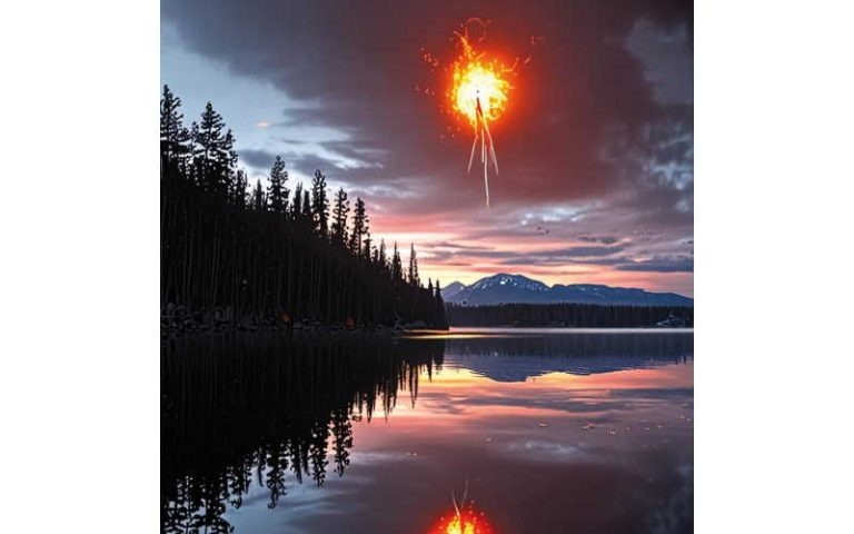 Яркий свет заполнил комнату, от чего Мишка проснулся. Посмотрев в окно, увидел огненные шары. Вдруг один из них залетел в дом и в печку полетел. А Миша, недолго думая, возьми да закрой печь заслоном. «Надо будет, через трубу улетит», — подумал он. И со спокойной душой лег дальше спать.
