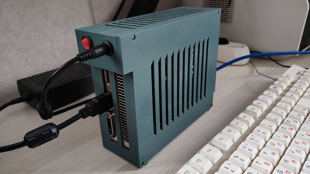 Тогда я разработал универсальный корпус для внешней видеокарты, который можно напечатать на 3D-принтере даже с небольшим размером рабочего стола: 20x20 сантиметров. Чертежи корпуса выложил в открытый доступ. Корпус назван универсальным неспроста. Распечатав нужный набор деталей в него можно разместить практически любую 2-слотовую видеокарту. Тогда мне казалось это несомненным плюсом, хотя такая универсальность потребовала усложнения конструкции, а готовой изделие для больших видеокарт получалось слишком громоздким.