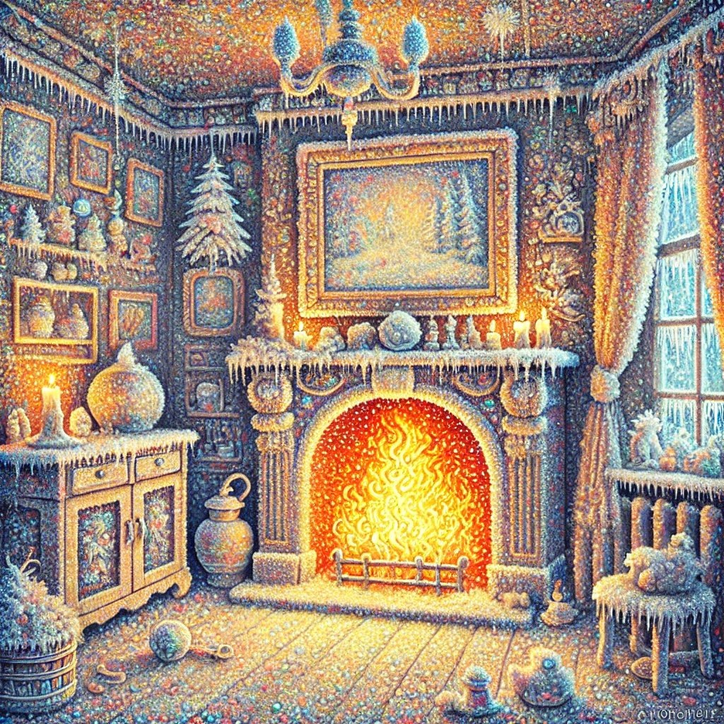 Это похоже на вполне реалистическую иллюстрацию с изображением камина с яркими и мерцающими, танцующими свой завораживающий танец, языками огня. Выглядит шикарно, отставляет впечатление действующего, но тепла совсем не даёт, ведь это только рисунок.