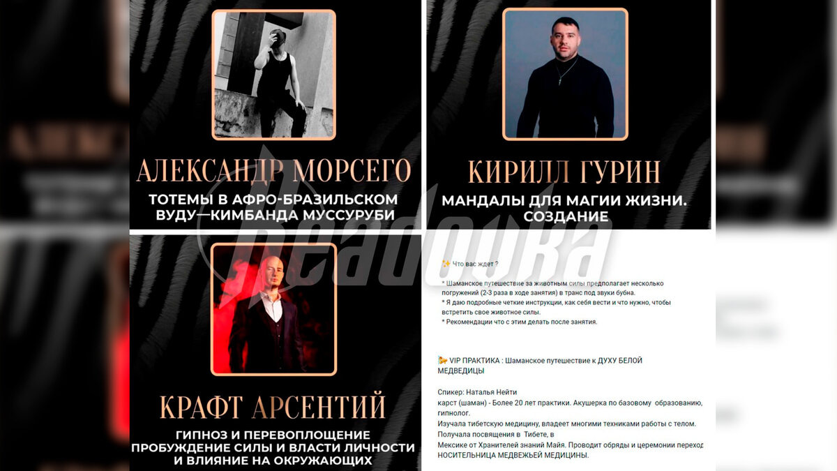 При этом стоимость одной лекции достигает 4 тыс рублей. В грядущие выходные в Москве пройдет шоу-фестиваль, посвященный «магии и эзотерике», на котором выступит целый ряд «специалистов» в области паранормального. О необычном мероприятии стало известно Readovka. Как обратили внимание журналисты, в списке участников и непосредственно спикеров фестиваля фигурируют носители «медвежьей медицины» и практик афро-бразильского вуду, а также маги, «энерготерапевты» и другие представители загадочных профессий. Стоимость билета только за одну лекцию, как выяснила Readovka, достигает аж 4 тыс рублей. Несмотря на это, желающих попасть на «VIP-практики» оказалось достаточно. Все билеты на них уже распроданы. Между тем неизвестно, как позиционирует себя мероприятие и насколько легально оно было организовано. Однако очевидно, что подобные сомнительные «представления» могут негативно сказаться на тех людях, чувства и психика которых находятся в уязвимом состоянии. Так же обманывая простых россиян, зараб