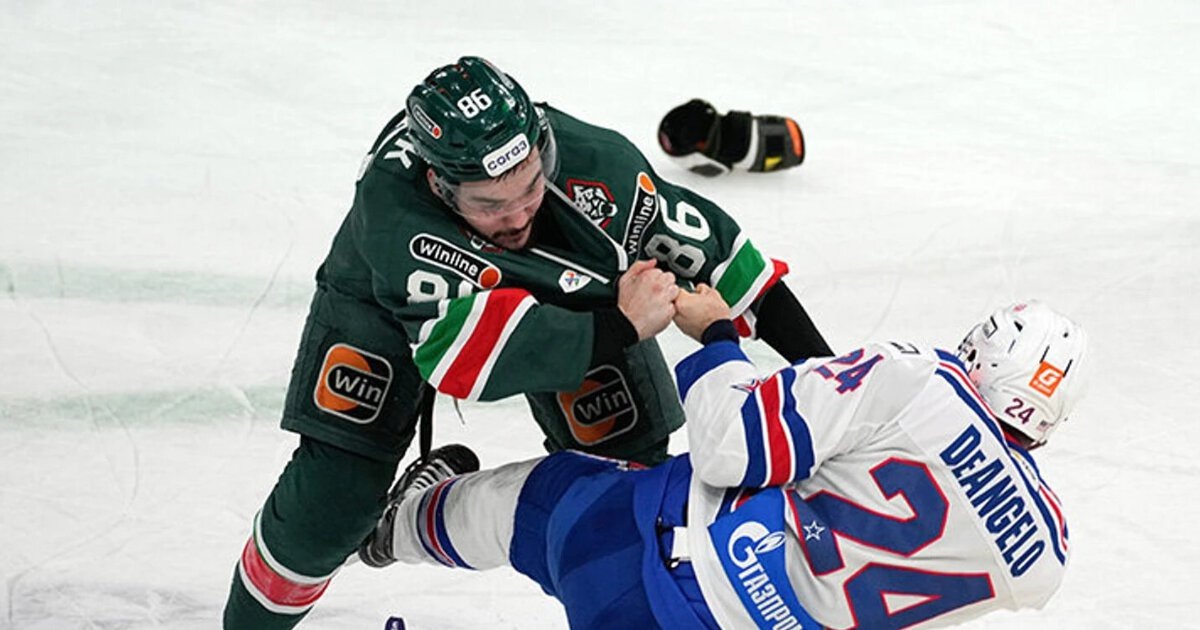 «Ак Барс» выиграл матч против СКА в овертайме со счетом 3:2. Во втором периоде форвард казанцев Никита Дыняк подрался с защитником петербуржцев Энтони Деанджело. Хоккеист «Ак Барса» завалил соперника на лед в этой потасовке. – На протяжении сезона слышим от вас тезис, что вот такие драки, как эта – нечто вопиющее. Но вы, наверное, обратили внимание, как зрители вставали, аплодировали. – Чтобы вы понимали – я не про саму драку, я про то, что когда игрок уже лежит на льду, то тот, кто сверху, уже по инерции будет бить как в боксе, как в смешанных боях UFC – смотрите, наверное? Федор Емельяненко или Хабиб Нурмагомедов. Когда он уже удушил Макгрегора, то вмешивается судья – речь об этом. Ребята хотят драться – хорошо, но лучше бы в хоккей играть. – Если бы вы выбирали одного игрока своей команды, кто мог драться с Дыняком, кто бы это был? – Может, кого-то из тренерского штаба взять? Альберт Лещев. Честно, ну, это такие шутки – никого. Если мы хотим играть в хоккей – мы должны играть в хокк