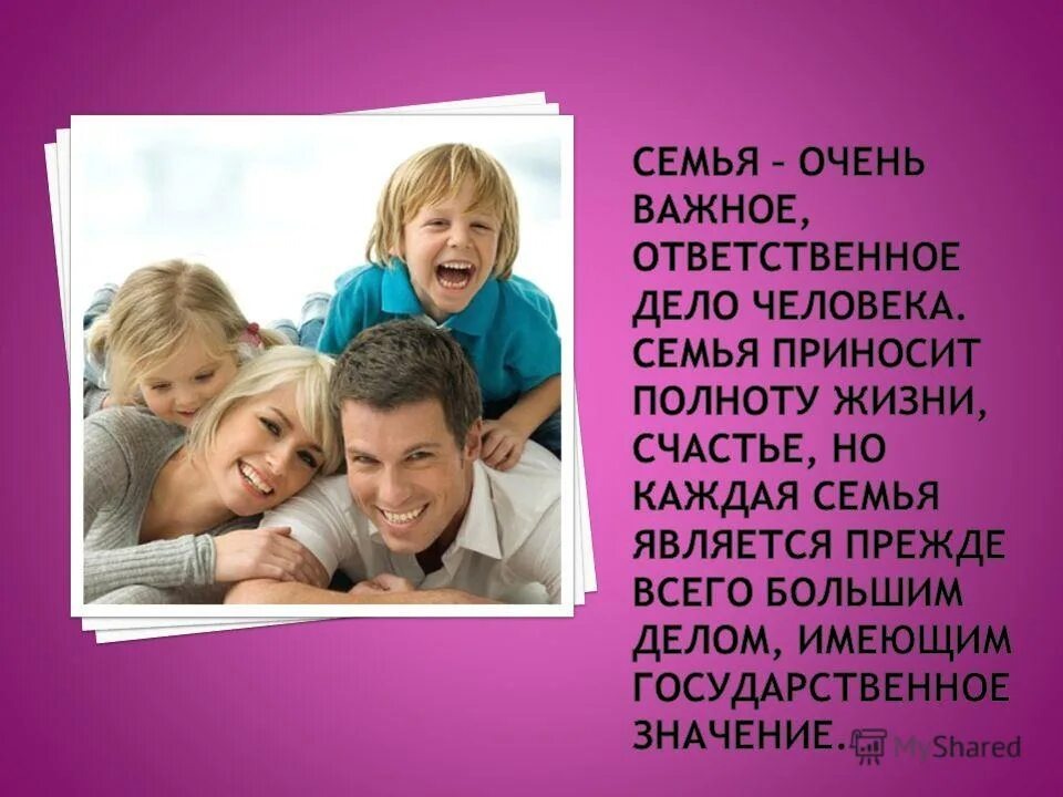 Хочу поразмышлять о важных делах в жизни человека. Что самое важное? Наверняка многие со мной согласятся, если я скажу создать свою семью, то есть мужчина должен встреть женщину, которая родит детей и вместе они будут о них заботиться, обучать и воспитывать. Для этого нужно мужчине и женщине "идти в ногу" с биологическим ритмом, то есть в период с 22 до 30 лет готовиться стать родителями. Если в этот период продолжать "играть в детские игрушки", то из таких родителей мало что путного получится, так как семья - дело ответственное. Когда есть семья и дети, то там работы хватает: обуть, одеть, накормить, в садик и школу отвести и т.д. Но если семья не получилась или не получается, то что делать в таком случае? Надо направить свои силы и возможности на какую-нибудь полезную работу для родственников, друзей, хороших знакомых или общества, помогать им. Но, конечно, не забывая о себе. Если с работой очень плохо, но у вас есть деньги и компьютер с интернетом, то можете на компьютере дома пис