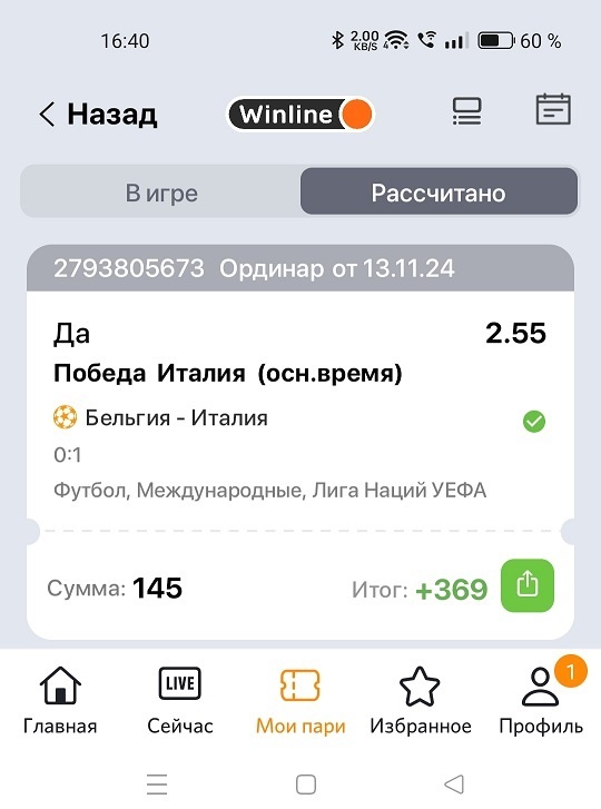 Когда меня уложили в ГКБ, чтобы почикать мой глаз, я взял с собой книгу по цимэнь – решил изучить подробнее тему спорта… потом я об этом написал пост у себя в Telegram… в смысле, не про глаз, а про расклады спорта в цимэнь. Вообще, надо сказать, что тема спорта очень «мутная»… надо сидеть и разбираться с каждым вопросом очень досконально… а так как мой учитель не дал нам эту тему, то приходится доходить до всего своей ясной головушкой. Так вот, в прошлый раз я поставил в матче ЦСКА (М) – Ахмат на столичную команду и выиграл 45 рублей… да, не густо, но мне важен сам факт. На днях состоялся матч Бельгия – Италия, и я поставил на гостей… all-in 145 рублей... в итоге – выигрыш Италии и + 224 рубля в копилку.