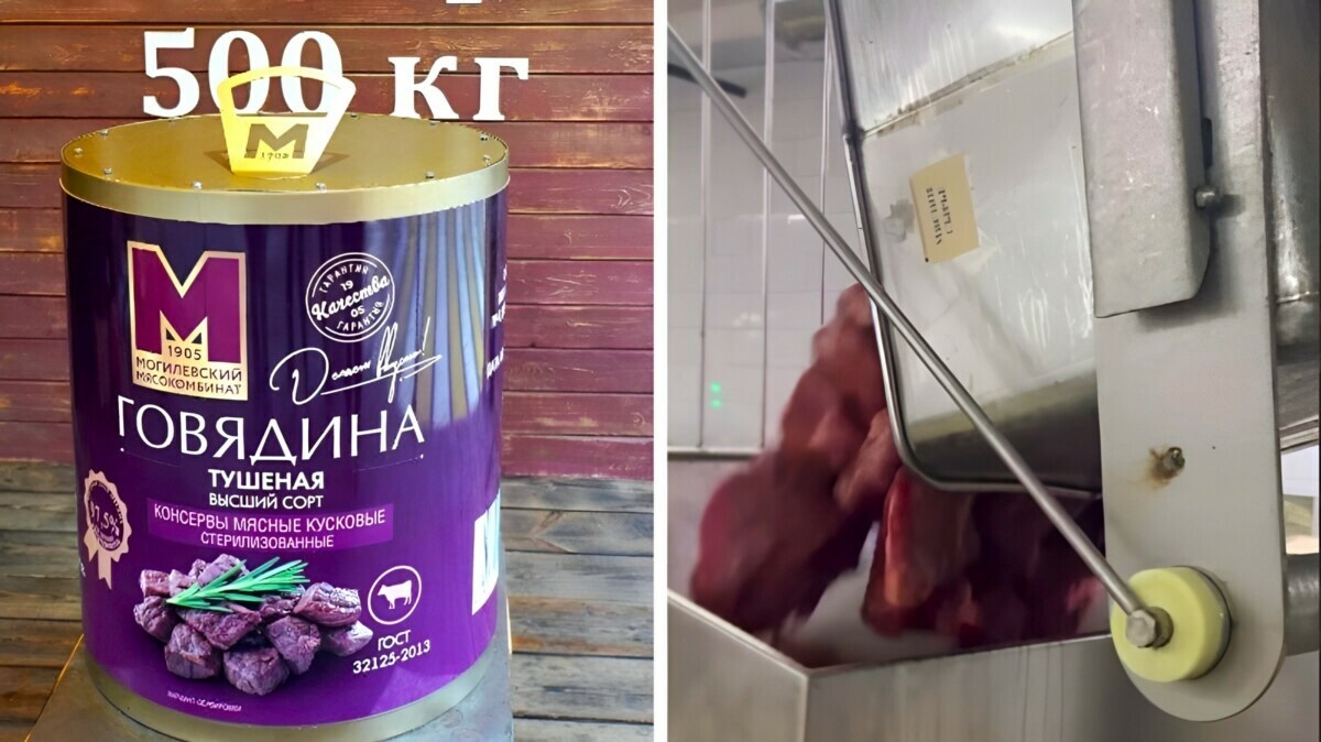 На Могилёвщине закатали 500-килограммовую банку тушёнки. Кому отправят? — Видео