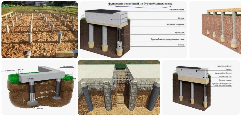 Всем здрасте, где можно найти ответы на интересующие вопросы. А это очень важно для новичка. Я в прошлом году приобрел участок. Но так получилось, что цена была невысока, нас устраивала и мы не подумали, что склон на участке будет для нас проблемой. Когда решили возводить дом, то поняли, что не знаем какой фундамент делать. Ленточный не получится, слишком глубоко в землю уходить надо. Ступенчатый не хочется. Мне знакомый сказал. Что есть буро набивной фундамент. Который используют в моих случаях. А вот принципа объяснить не смог. Подскажите что это за фундамент и когда его используют? Вам знакомый правильно сказал. Буронабивной фундамент используется на слабом грунте или же на участке, который имеет склон. Сравнительно с другими вариантами, которые используются при уклоне, это самый дешевый. Принцип состоит в том, что вы бурите ямы для свай и туда уже заливаете бетон с трубой. А уже сверху делается по принципу ленточного.